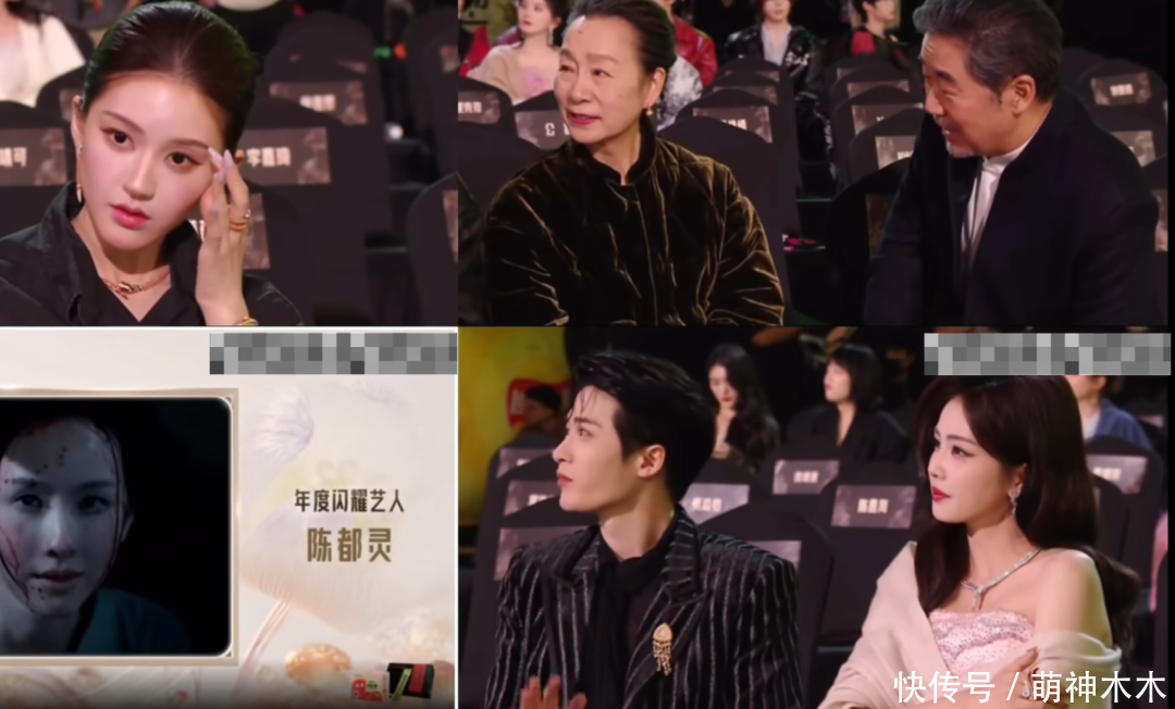 而且在陈都灵发表感言的过程中,白鹿全程也几乎是低头状态,不像檀健次一样有明显的抬头观看动作。关于低头这个问题,其实可能跟主办方安排的小屏有关系,认真观察会发现梅婷、奚美娟等也都是看着眼前的小屏,只是她们脸上露出了满意的笑容,所以给人的感觉就很认真,不像白鹿看起来比较淡然。
